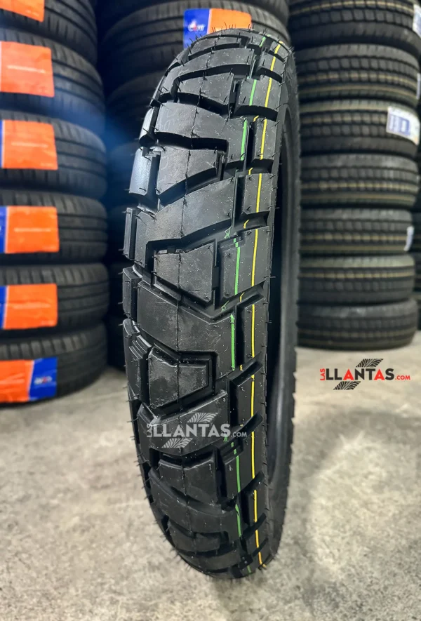 Permite un muy buen rodar en carretera destapada y semi pavimentada gracias a su diseño TRAIL. Compuesto de dureza media-alta para brindar agarre y tracción en trocha o carreteras difíciles. Con esta llanta podrás recorrer cualquier pueblo o vereda en Colombia.